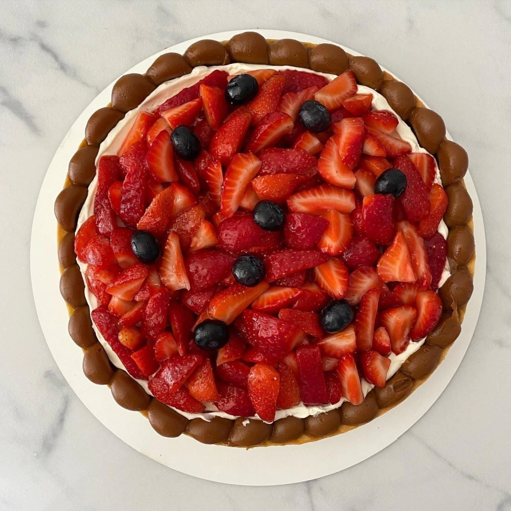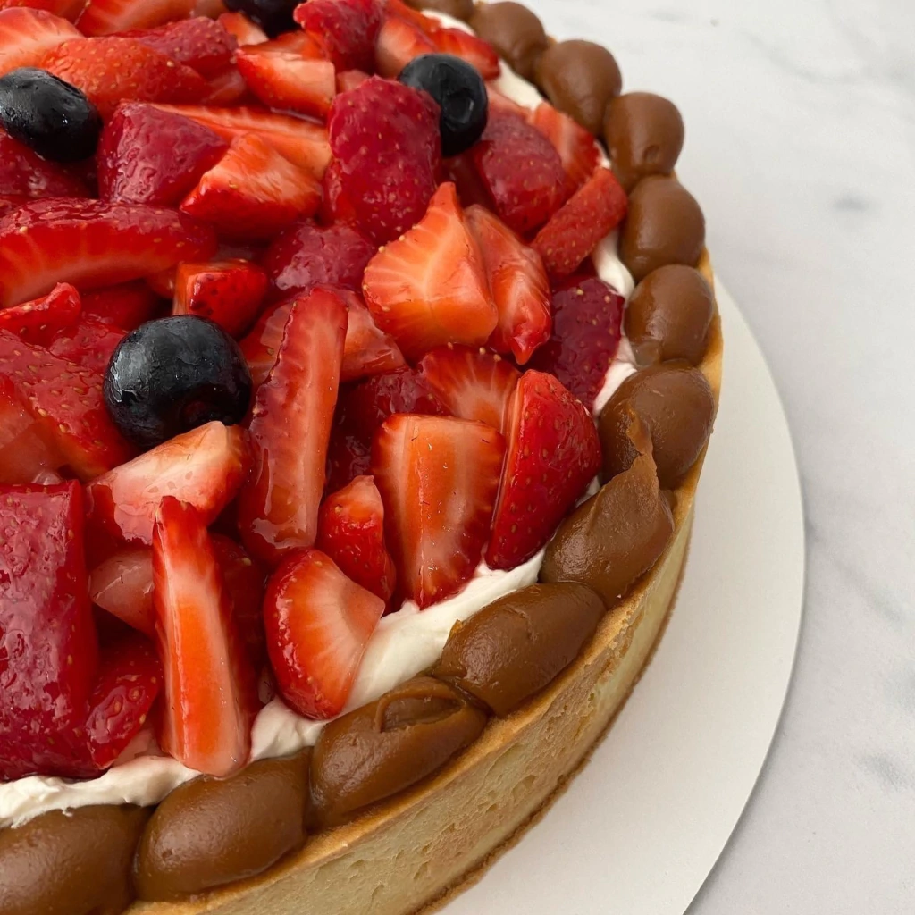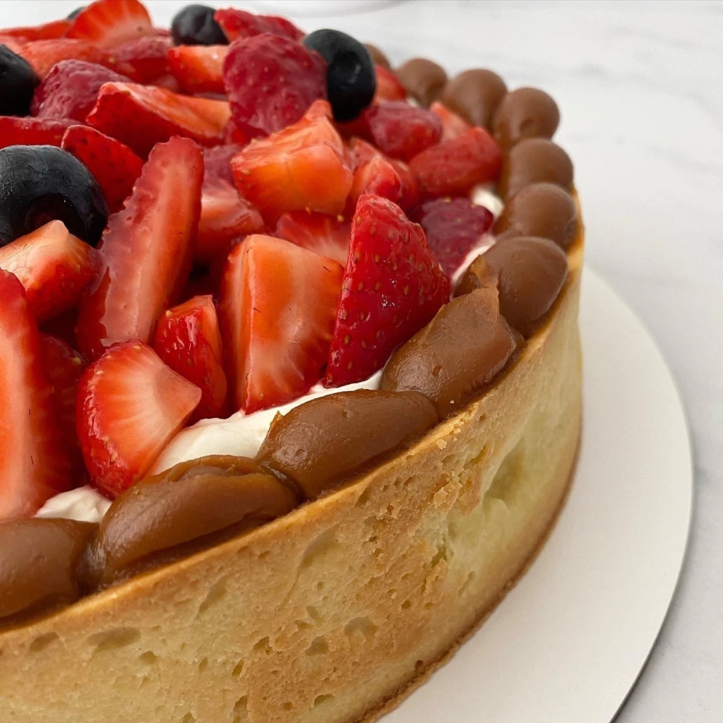 Sablee clásica rellena de dulce de leche, crema chantilly y frutillas