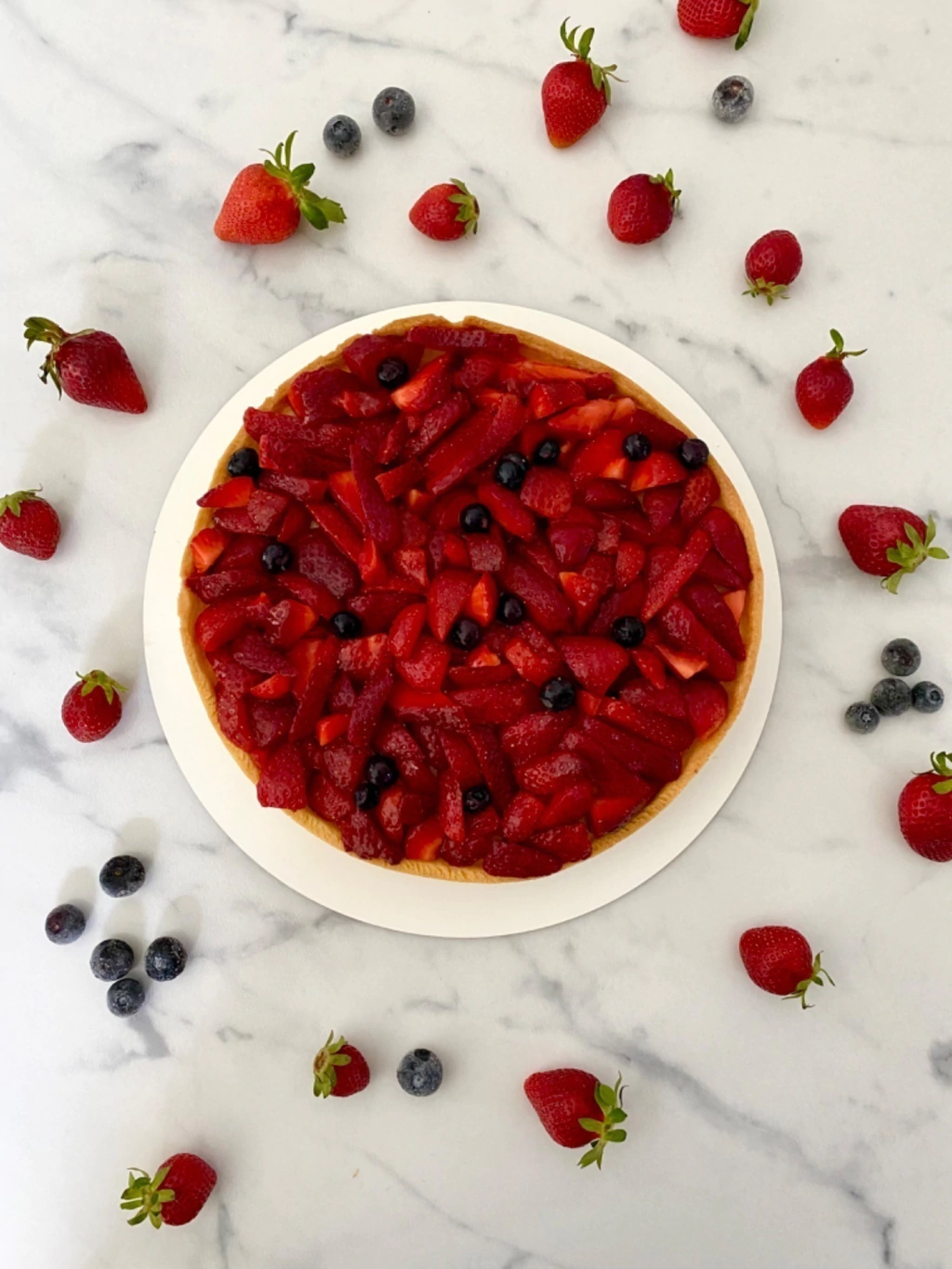 Tarta de Sablee clásica con crema pastelera y frutillas + decoración de arándanos